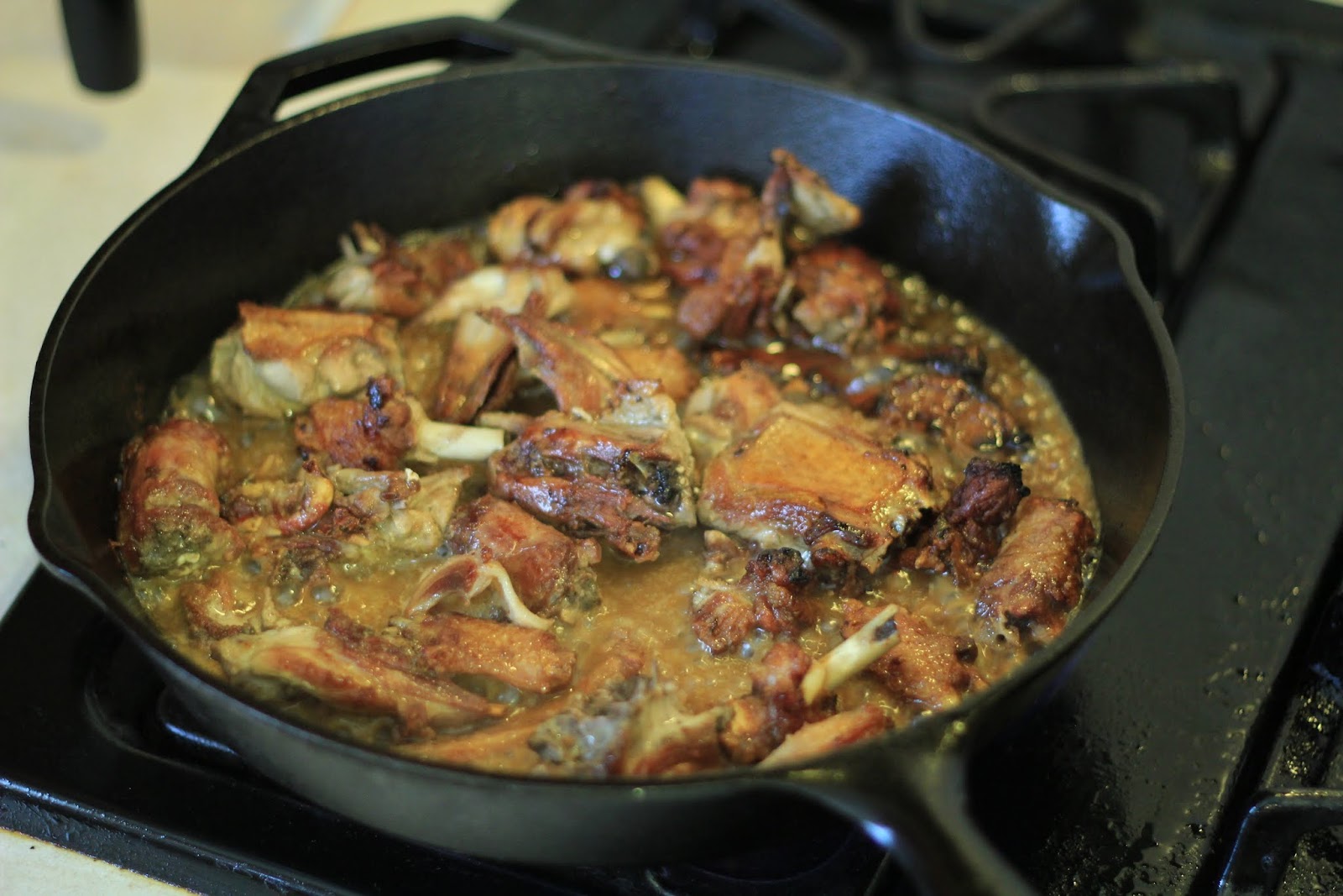 Dupa toate minutele astea, lichidul se presupuna ca a ajuns la nivelul oaseleor. Se strecoara prin mai multe site dese si cele doua cups de lichid acre au mai ramas se pun inapoi pe foc si se reduce pana a ajuns la un cup.